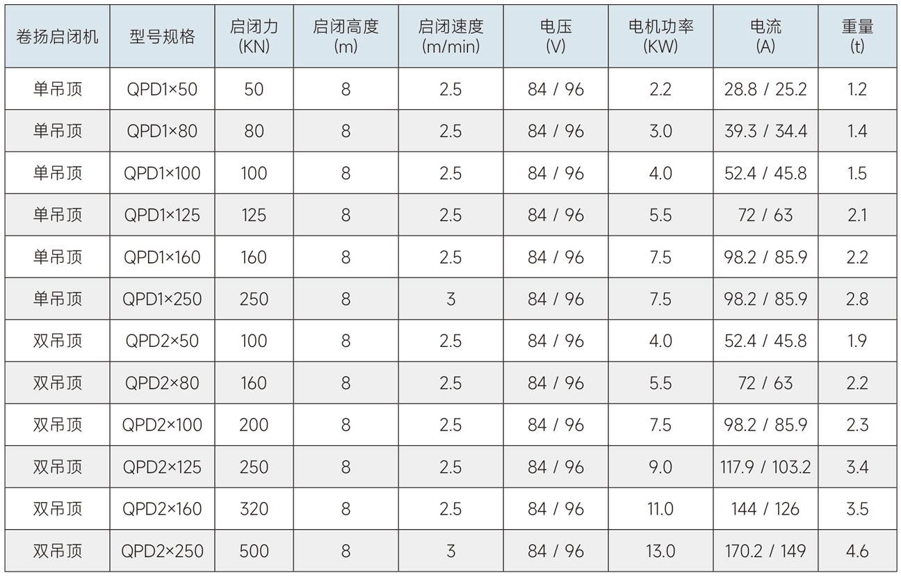 ●工作電壓:采用直流供電DC84V/96V,電源額定電壓降低20%時,啟閉機仍能正常運行;